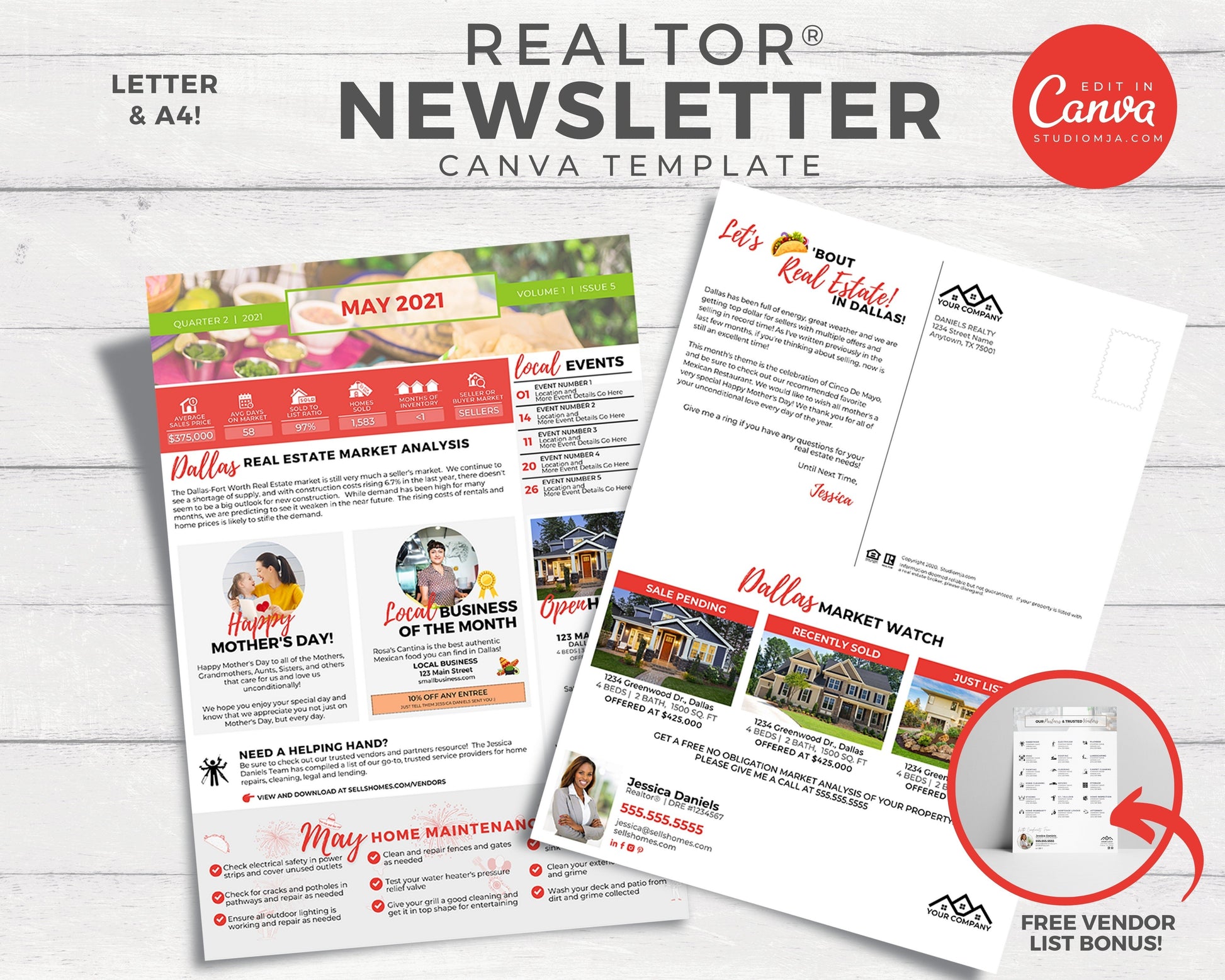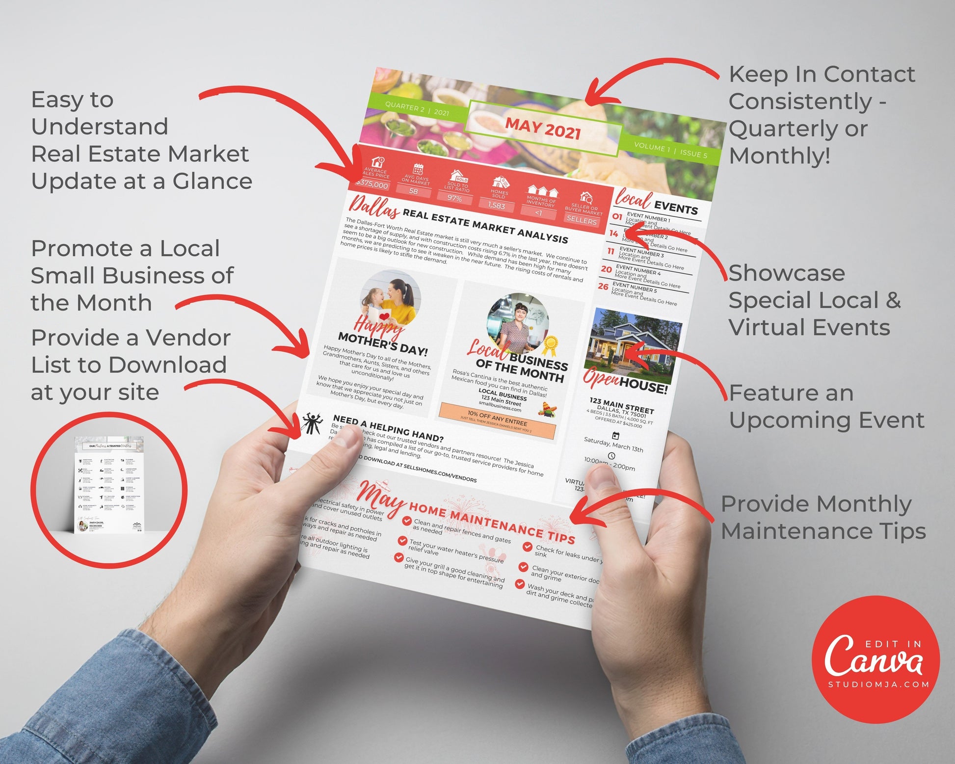 This newsletter is a beautifully designed CANVA template. Keep in touch with your clients and prospects monthly with professionally branded marketing!