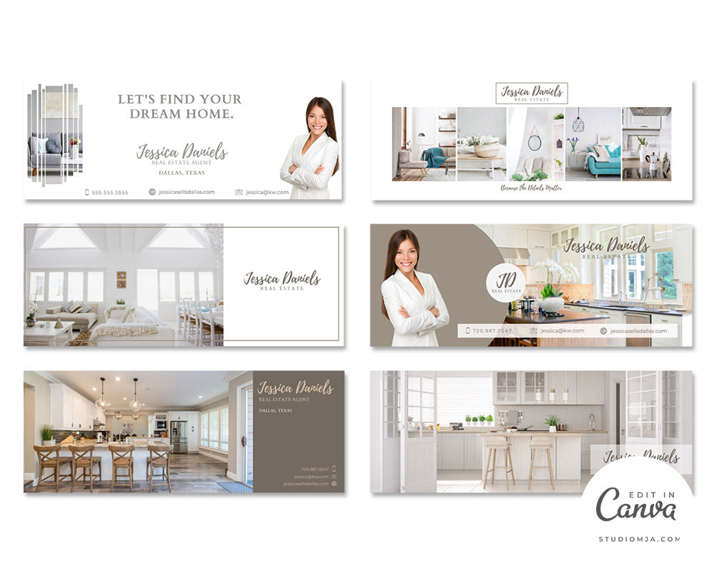 Create a Facebook Cover for your Realtor Facebook page. Easily edit to personalize to fit your real estate agent branding in Canva.