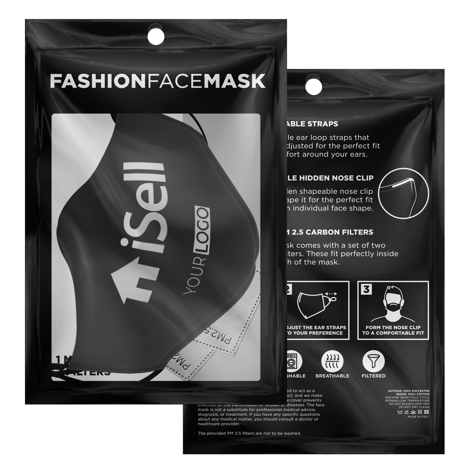 Look fashionable with this custom printed face mask. It comes with easily adjustable ear loop straps to fit all face shapes, as well as a shapeable hidden nose clip for that perfect fit. The outer surface is printed on a premium breathable polyester fabric that won't irritate your skin. While the inner surface is made from a soft breathable cotton fabric. On the inside of the face mask you can find a pouch where you can add any of your own filters. Each face mask also comes with 2 pieces of PM 2.5 filters that can be placed inside the pouch.