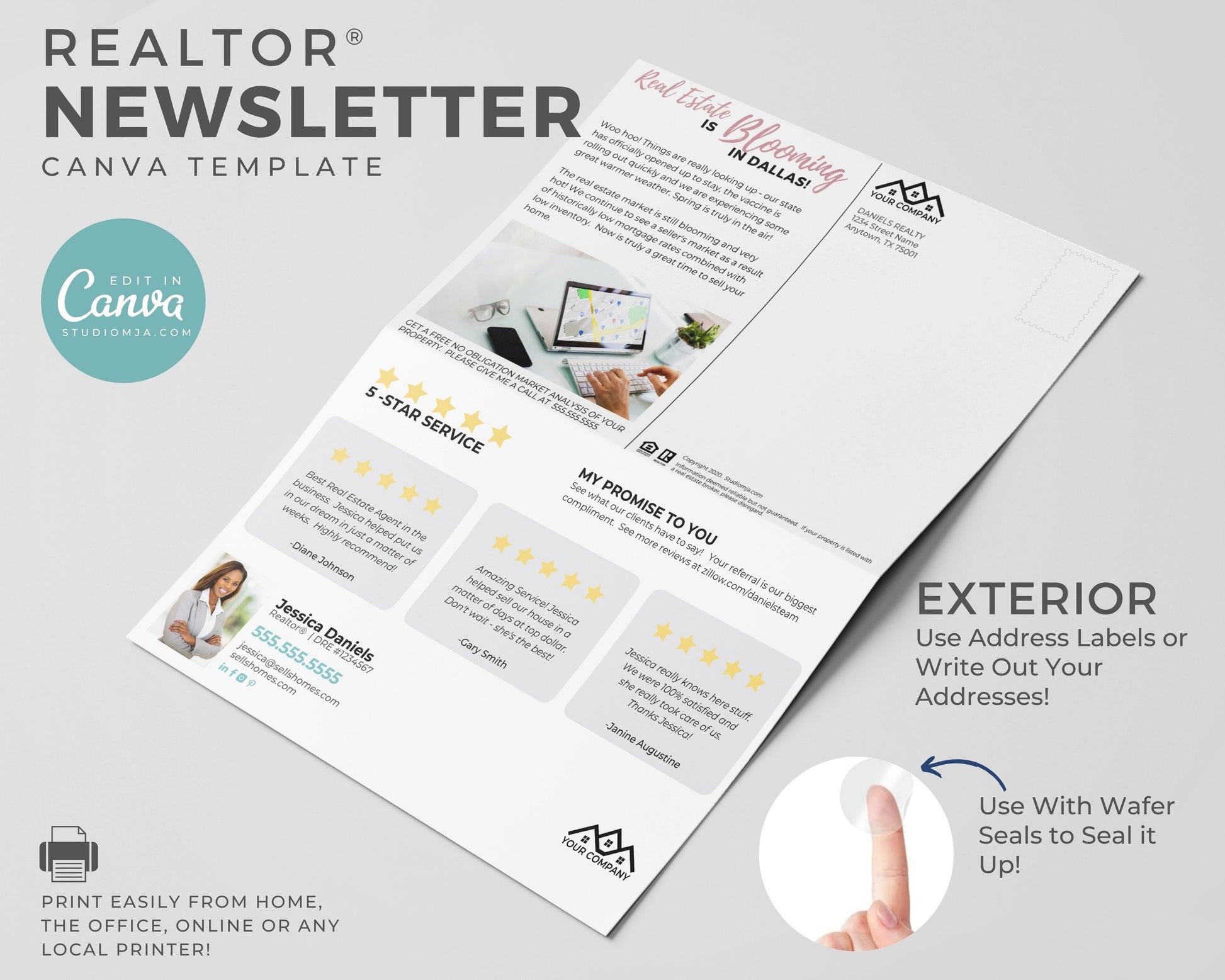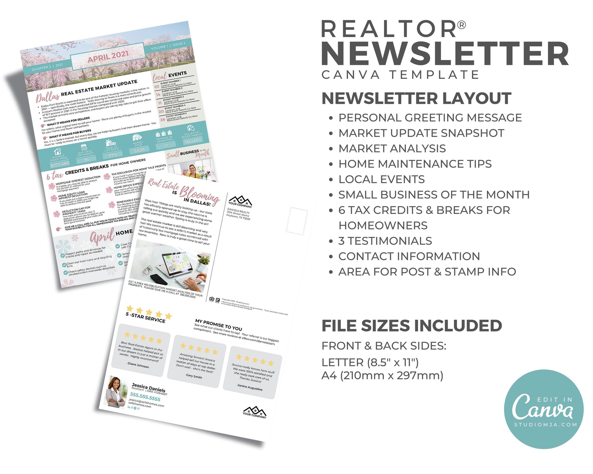 This newsletter is a beautifully designed CANVA template. Keep in touch with your clients and prospects monthly with professionally branded marketing!