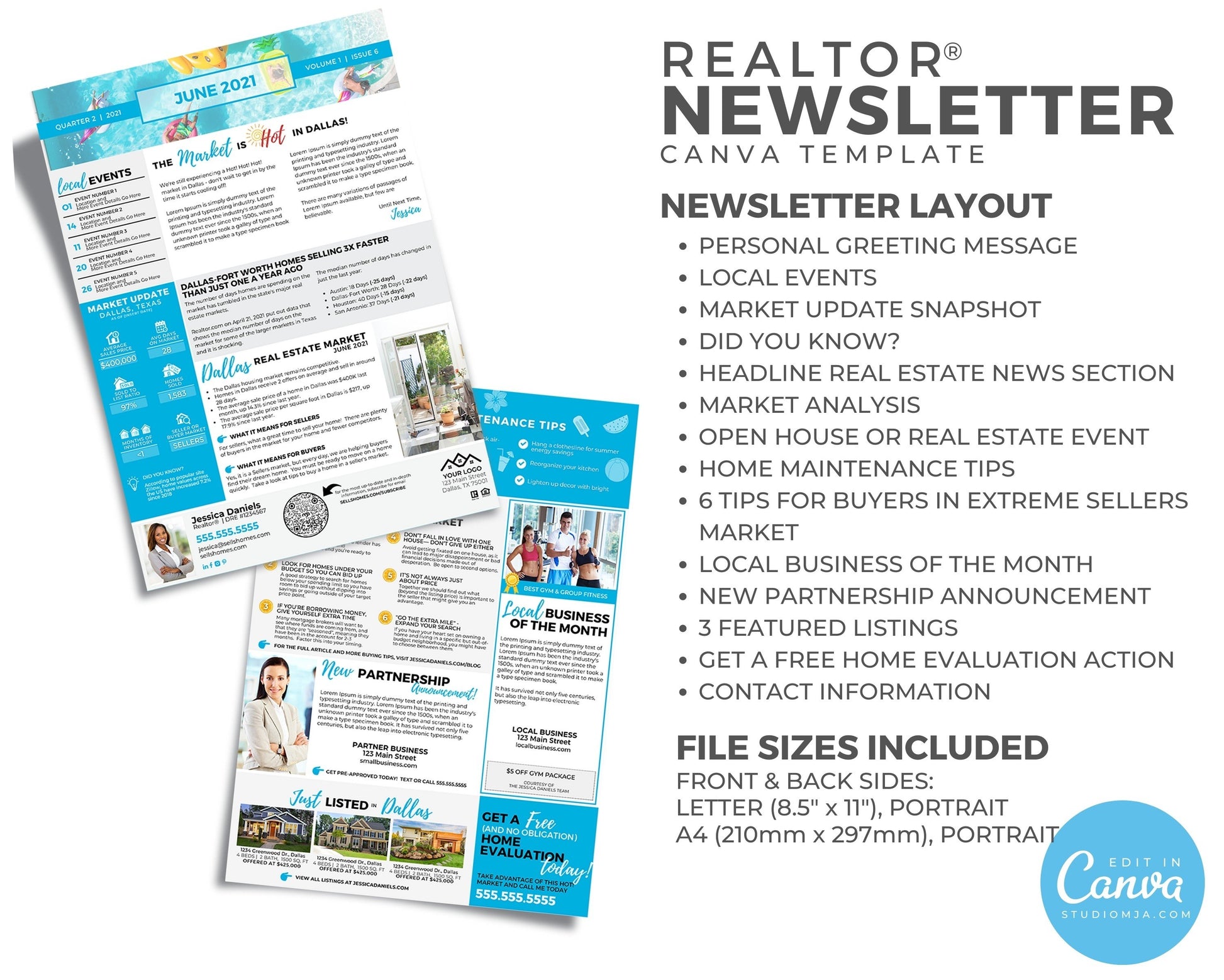 This newsletter is a beautifully designed CANVA template. Keep in touch with your clients and prospects monthly with professionally branded marketing!