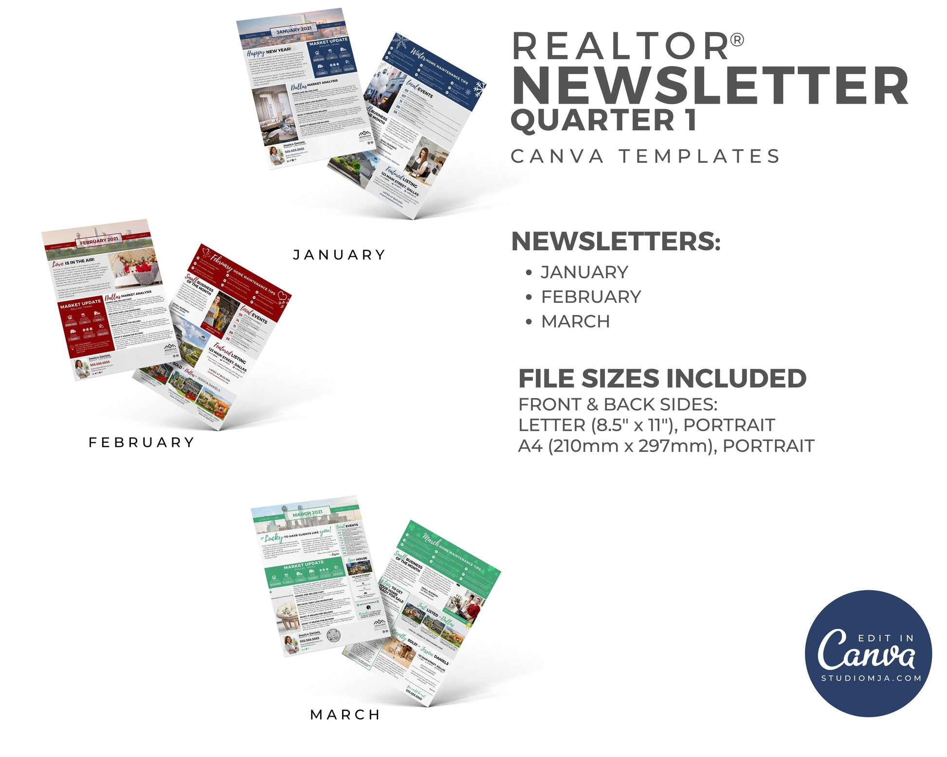 Get the bundle and SAVE! 3 different layouts and themes for your real estate newsletters in Quarter 1! These newsletters are beautifully designed CANVA templates. Easily customize to fit your real estate branding and the information you want to include. Keep in touch with your clients and prospects monthly with professionally branded marketing!
