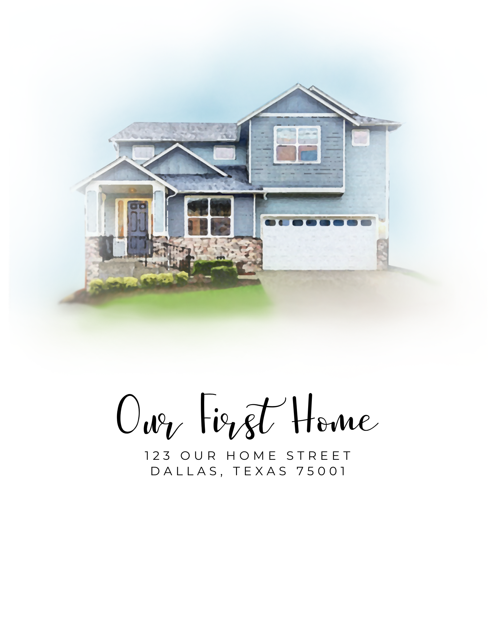 Home sweet home. This digital watercolor house portrait has a lot to brag about. Not only is it a show-stopping piece of art that you will cherish for years to come, it also makes a special gift for new homeowners, newlyweds, and couples celebrating their anniversary. Houses, buildings, landscapes ... this portrait can capture it all.